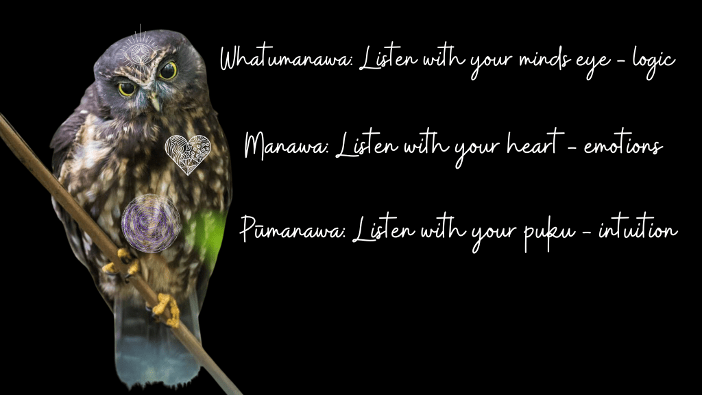 - Whakarongo – Pūmanawa – listen with your puku- intuition