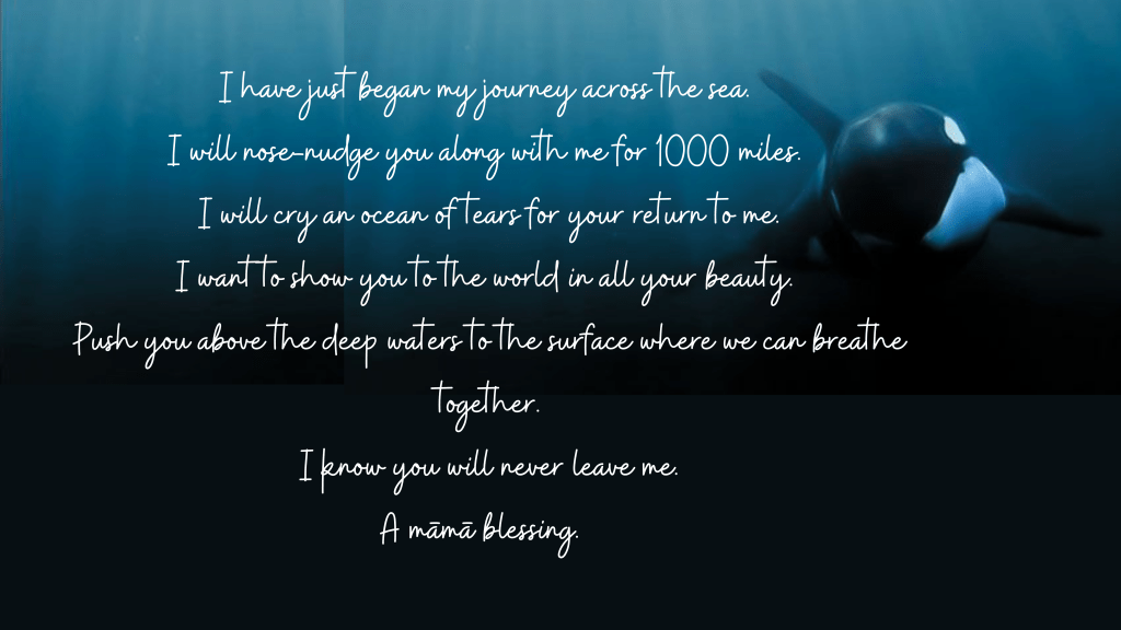 I wrote my poem below after I read an article about a māmā whale, grieving the death of her calf, in her own way.